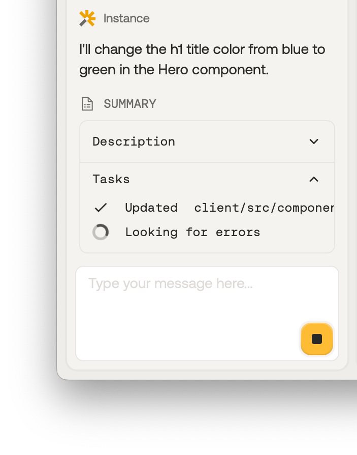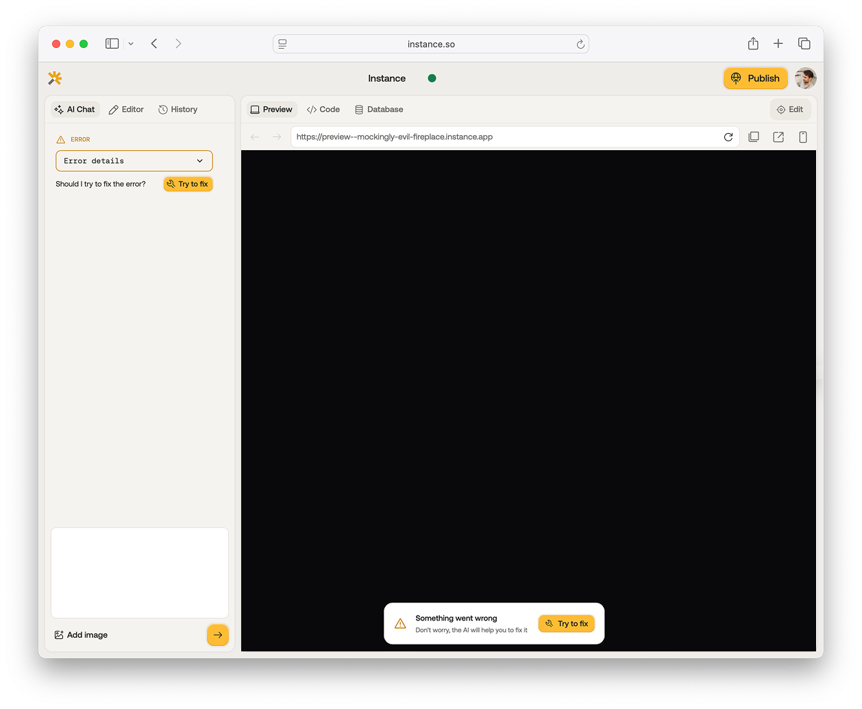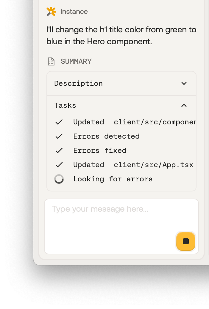 After each prompt you send, Instance automatically runs checks for any mistakes and attempts to fix them immediately.