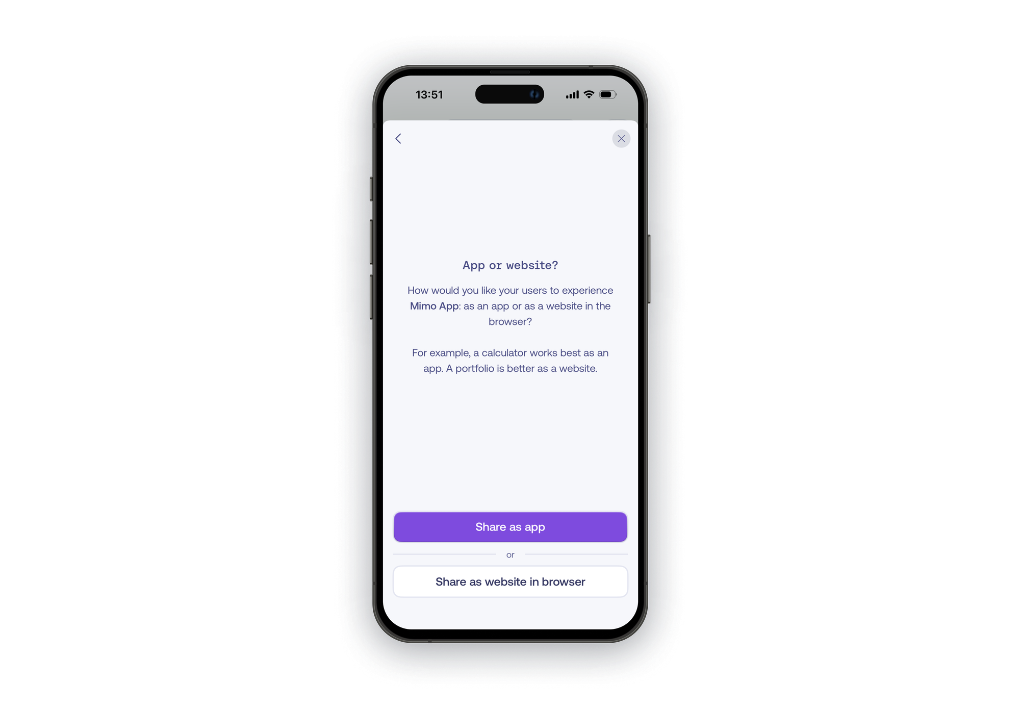 Next, you need to select Share as app to share the app as a PWA. (You can still share the app as a website if you prefer.)