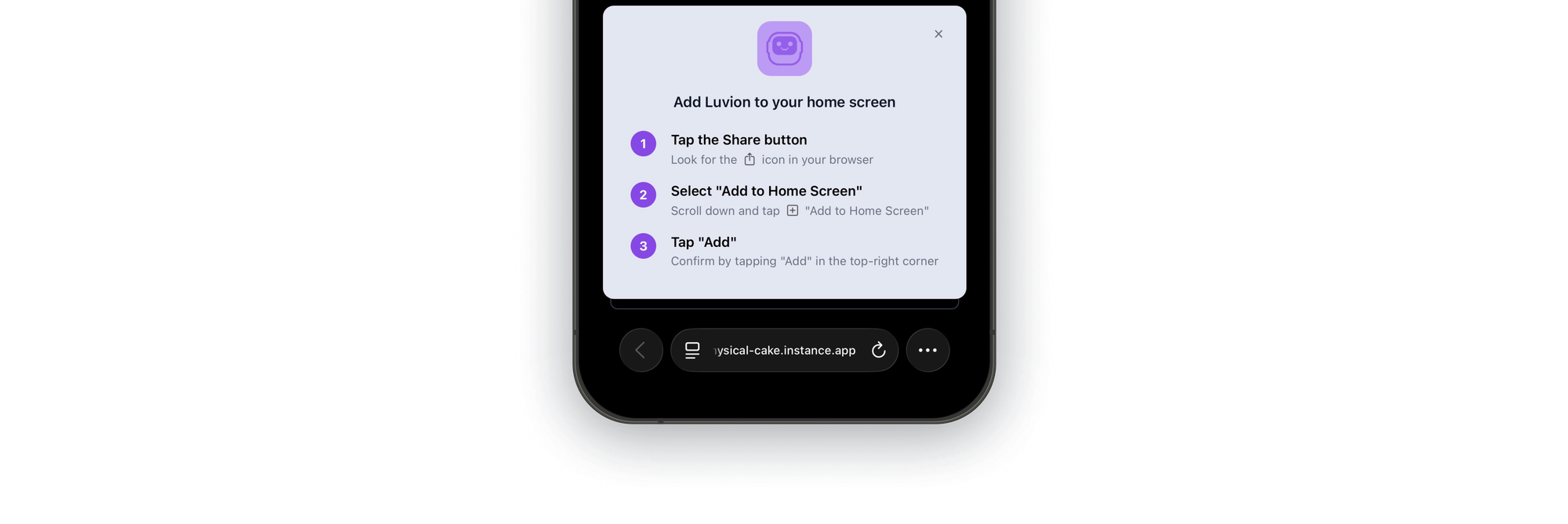 On Android, tapping Install immediately adds the app to your device. iOS users, however, must follow a 3-step process due to Apple's stricter requirements.